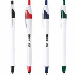 The Javalina® Classic Stylus pen has an hourglass-shaped barrel in crisp white with classic color trim. The stylus tip makes a highly desirable promotional pen at any event. Guaranteed ultra-smooth writing ink cartridge in either blue (default) or black ink.