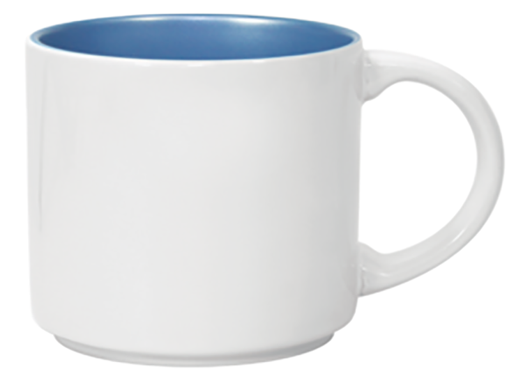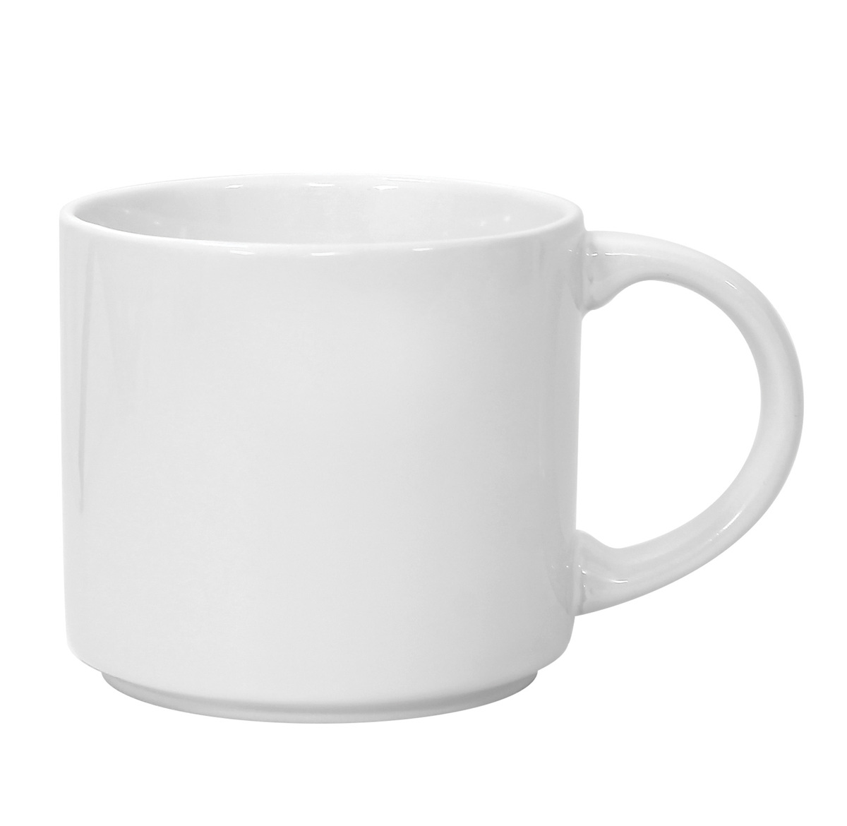 This white ceramic metro mug holds up to 14 oz. of coffee or tea and features a comfortable C-shaped handle which makes it easy to drink from. This measures 3.5" H x 3.1875" base x 3.875" top, has a stackable footed base, is dishwasher and microwave safe, and can be imprinted with your logo using our full-color sublimation method.