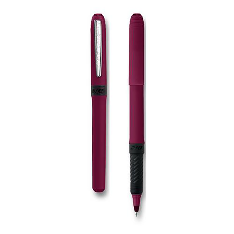 The BIC® grip rollerball pen has a two-piece capped design with an easy-to-grip rubberized barrel, 0.7 mm point, nickel-plated trim, and fast-drying ink to keep things neat while your write. Add your logo or message to customize.