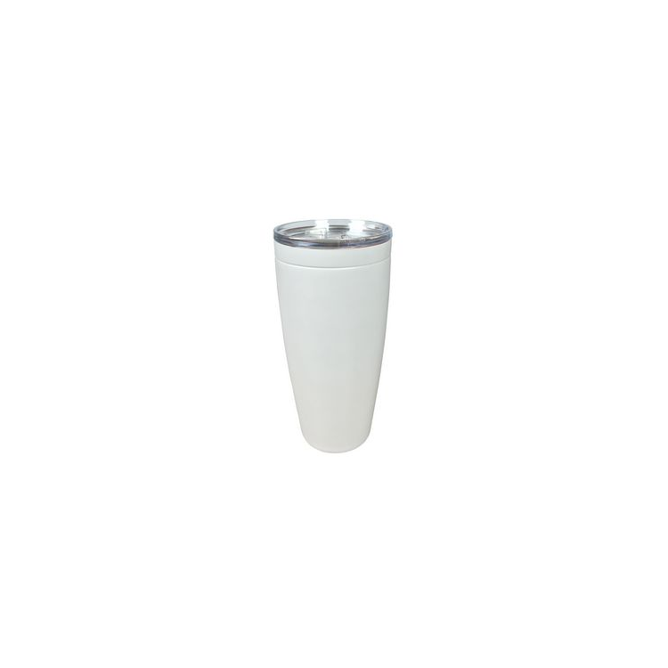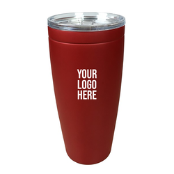 This 4" x 8" 30-ounce capacity double-wall vacuum-insulated stainless steel container has a copper lining, and a screw-tight, push-activated drink-through lid. The unique construction keeps liquids hot for up to 5 1/2 hours or cold for up to 24. Add your logo or emblem.